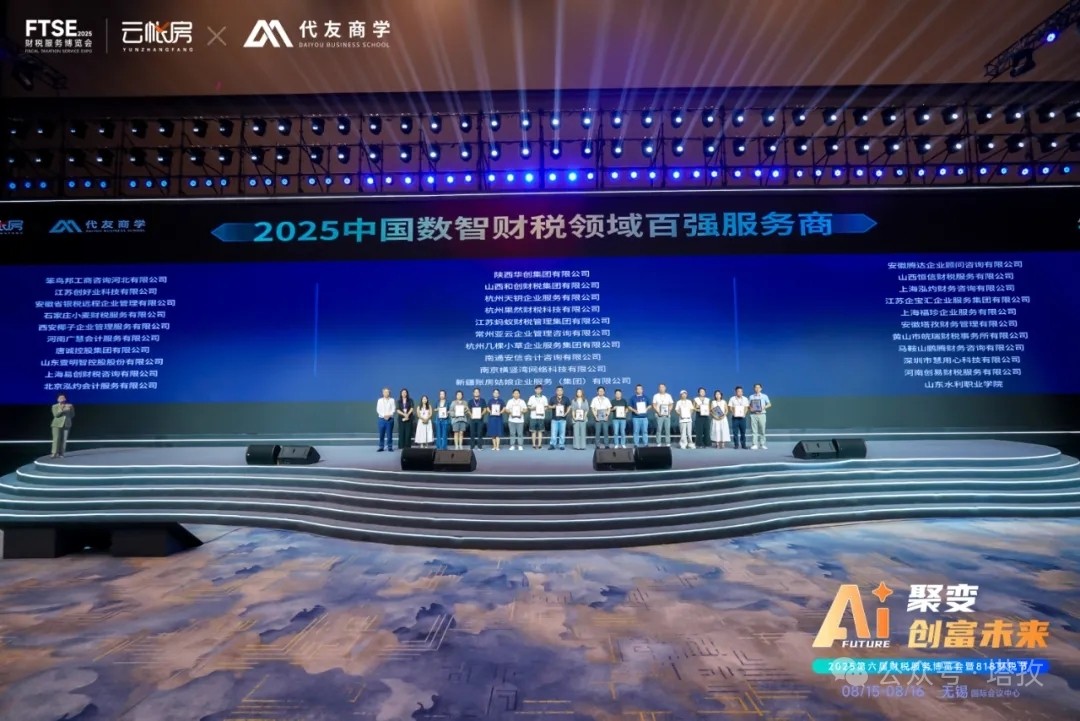 會(huì)議壓軸環(huán)節(jié),備受矚目的“2025中國(guó)數(shù)智財(cái)稅領(lǐng)域百?gòu)?qiáng)服務(wù)商”榜單隆重揭曉。其中,安徽塔孜財(cái)務(wù)管理有限公司憑借優(yōu)異的成績(jī)和口碑獲得“2025中國(guó)數(shù)智財(cái)稅領(lǐng)域百?gòu)?qiáng)服務(wù)商”榮譽(yù)獎(jiǎng)項(xiàng)。