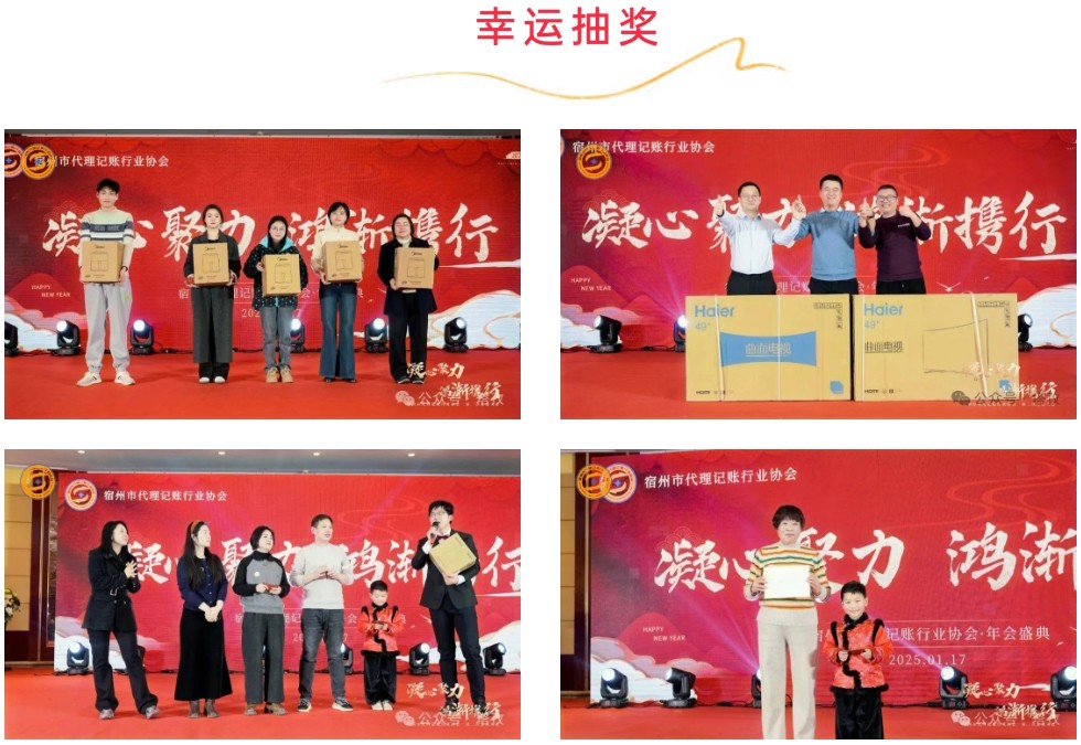 2025年1月17日,“凝心聚力·鴻漸攜行—宿州市代理記賬行業(yè)協(xié)會一屆二次會員大會”成功舉辦!會員單位代表、相關業(yè)務合作單位代表們齊聚一堂,共商協(xié)會、行業(yè)發(fā)展大計,共同迎接美好的2025年!